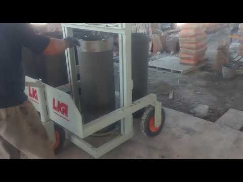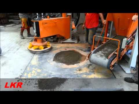 Construída em perfis de aço reforçadas, apresenta um desenho simplificado, para minimizar o espaço ocupado e facilitar a extração dos tubos. A maquina é de fácil manuseio com o mínimo de peças em movimento, o circuito hidráulico foi projetado com três pistões, onde se movimenta um por vez de acordo com a sua função. Um conjunto de vibradores para os moldes de 200, 300, 400, 500 e 600mm e um conjunto de vibradores para os moldes de 700, 800, 1000 e 1200mm fixas no molde exterior. No bloco hidráulico, com os comandos manuais se controla todos os movimentos para a fabricação de tubos. O molde exterior com o núcleo forma durante o processo de fabricação parte integrante da máquina. Somente o tubo fresco com seu anel de base é transportado para a zona de curado.